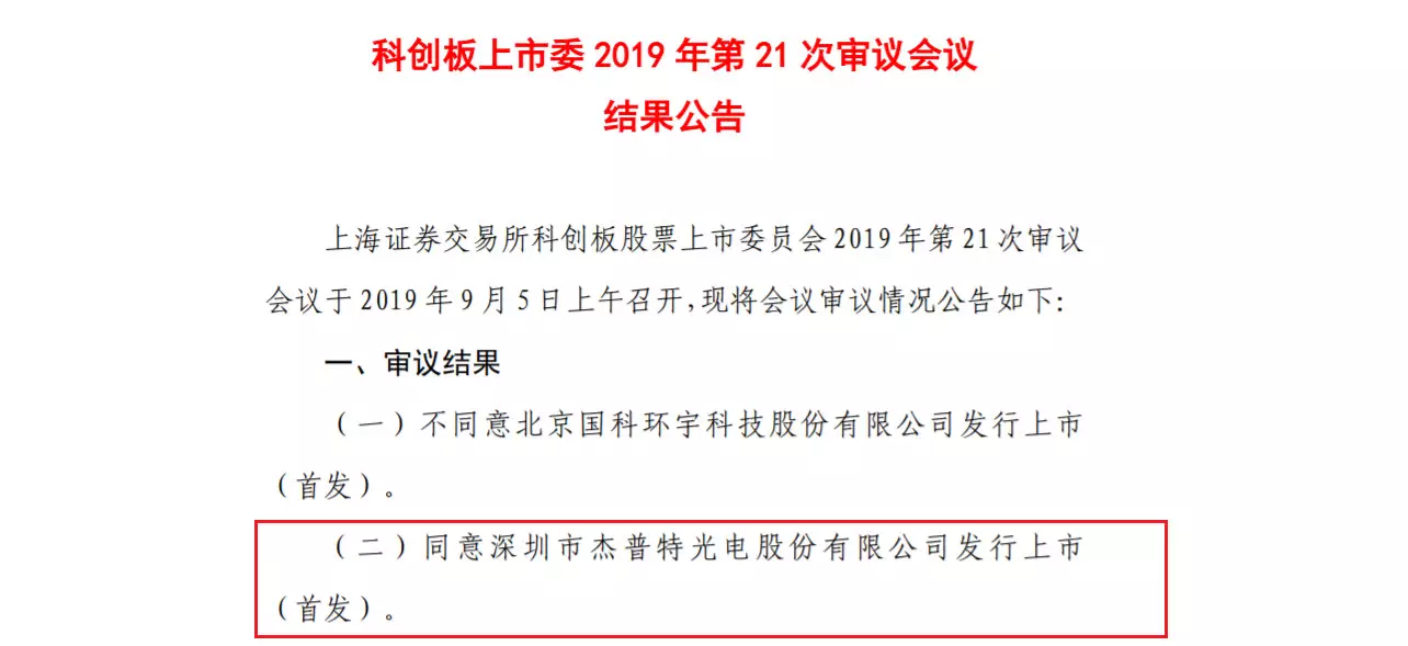 9月5日,上交所发布科创板上市委第21次审议会议结果公告,同意深圳市杰普特光电股份有限公司的上市申请,杰普特成为无锡创投集团基金在科创板上市的被投企业。