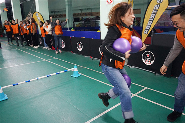 “企鹅漫步”接力 团队越来越默契 “加油”、“稳住”、“漂亮” 队员之间气氛越来越融洽